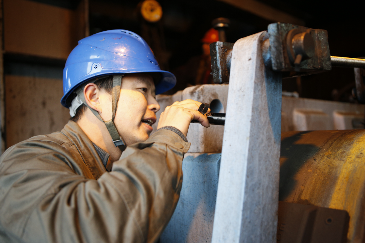 最考驗的還是寒冬酷暑時節(jié)。夏季烈日高懸,但工作連體服、安全帽、勞保鞋、手套等安全防護(hù)措施一個也不能少,在煤塵較大的空間要戴上防護(hù)口罩,各種防護(hù)裝備變成了一個“小鍋爐”,對薛俊江進(jìn)行著高溫“烤”驗。冬季天寒地凍,幾十米高的大機(jī)上狂風(fēng)呼嘯,這時防護(hù)裝備又成了唯一的屏障,他只能低著頭,瞇著眼睛,一邊抵抗著寒風(fēng)的凌虐,一邊加緊進(jìn)行維修工作。
