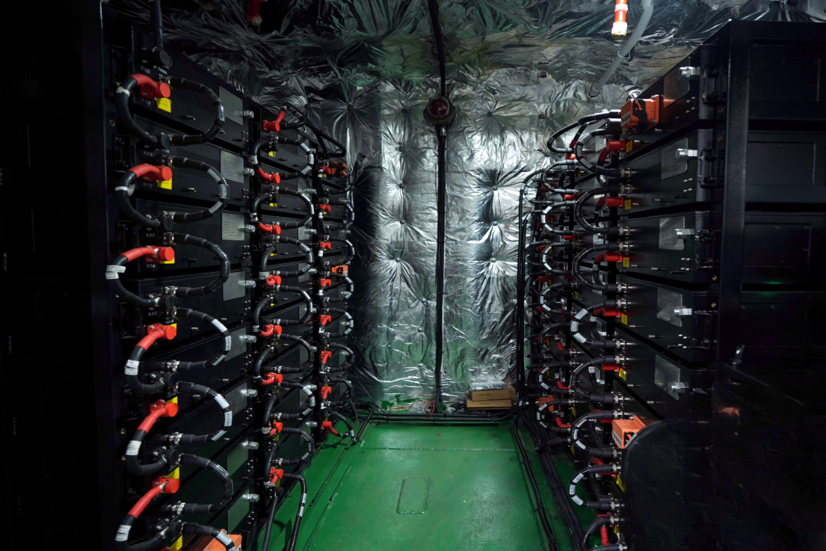 “油改電”貨船電池間內電池組。 邵子謙 攝