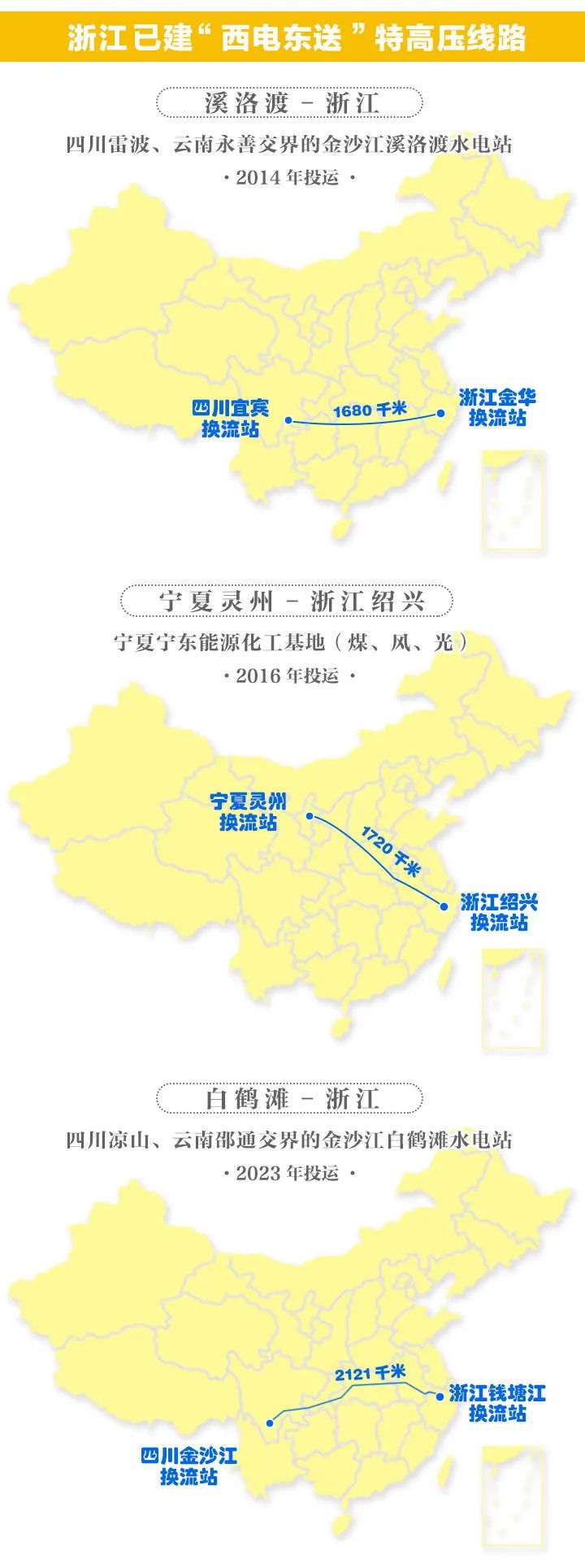 就在去年6月,白浙特高壓完成全容量投運(yùn),將四川白鶴灘水電站的清潔能源注入浙江;早前,賓金、靈紹特高壓工程分別從四川溪洛渡水電站和寧東能源化工基地通往金華和紹興。