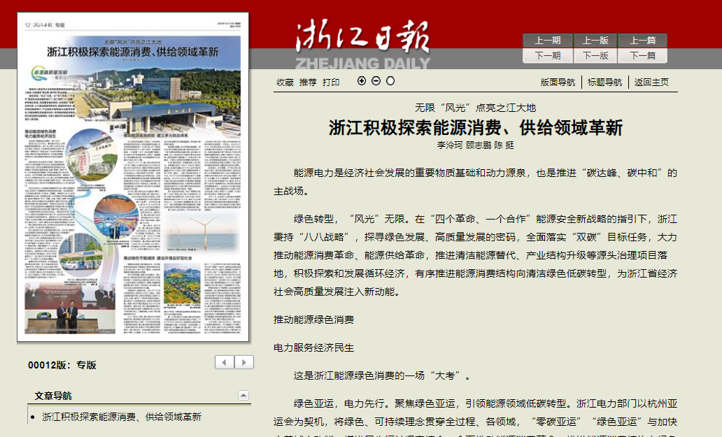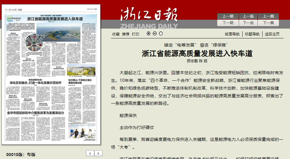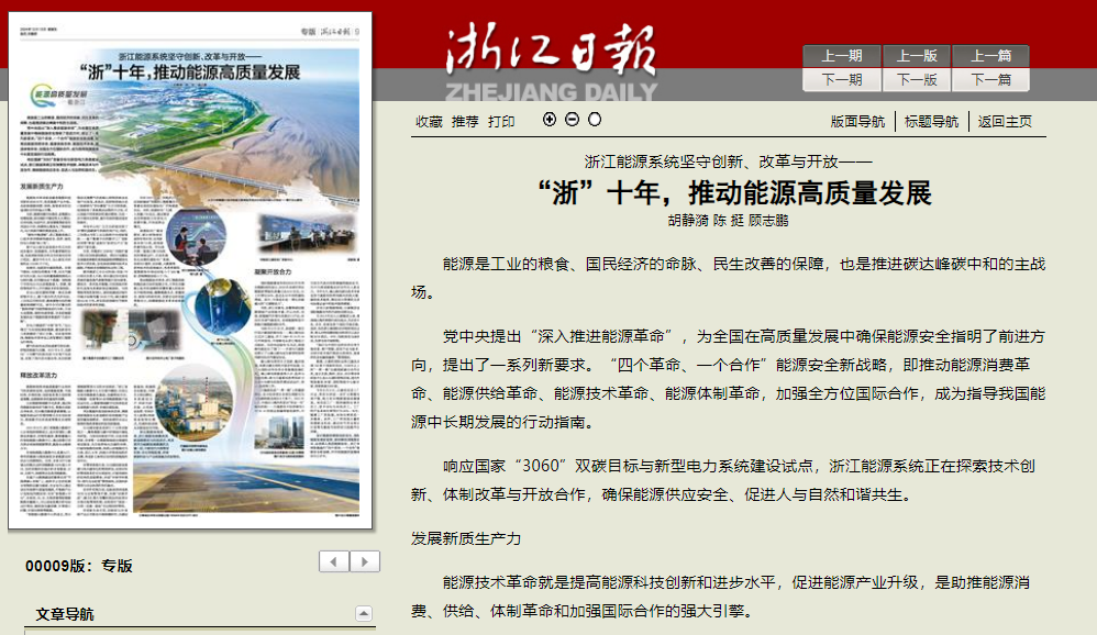 《浙江日報》聚焦浙能集團高質量能源保供和高質量綠色轉型 助力浙江高質量發展