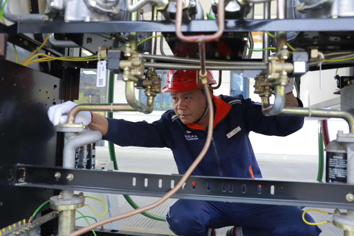 迎峰度冬期間,浙能新天煤化工現場操作人員正在認真巡檢。 祁媛 攝
