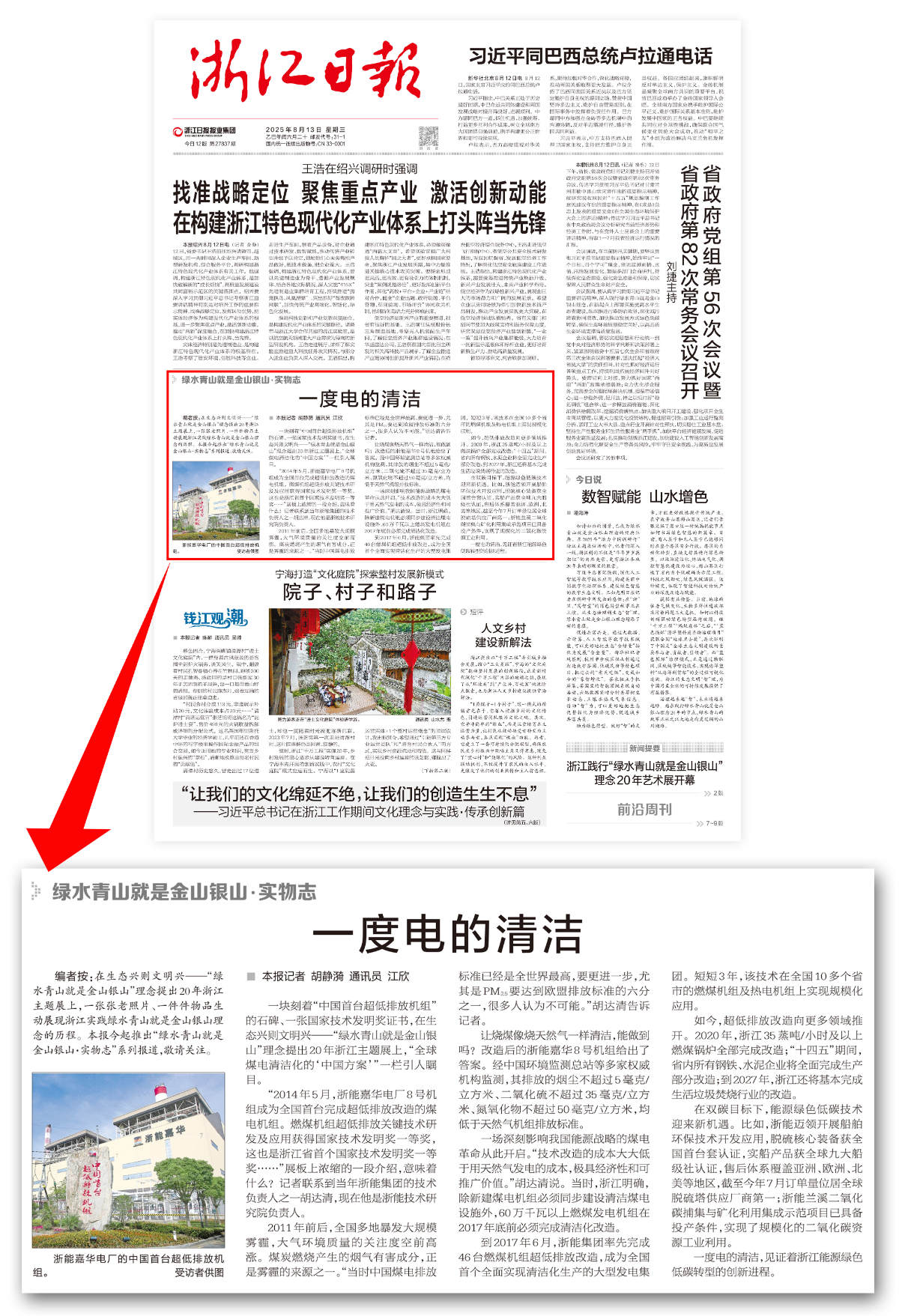 “兩山”理念浙能實踐 | 《浙江日報》頭版刊發《一度電的清潔》