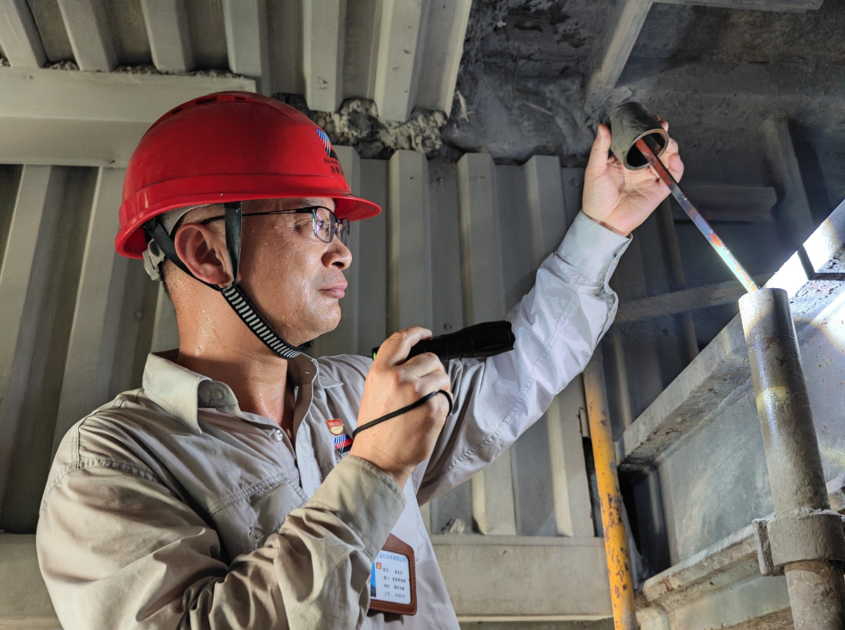 岑一洋每日深入現(xiàn)場(chǎng),以“時(shí)時(shí)放心不下”的態(tài)度緊盯關(guān)鍵環(huán)節(jié)。煤場(chǎng)內(nèi)悶熱不通風(fēng),在里面待上半小時(shí),人就像從水里撈出來(lái)一樣。在輸煤棧橋,岑一洋俯身仔細(xì)檢查16A皮帶邊緣的磨損情況。這條皮帶作為上煤“主動(dòng)脈”,在迎峰度夏期間幾乎不停歇運(yùn)轉(zhuǎn),承擔(dān)取煤入倉(cāng)和提升庫(kù)存的雙重任務(wù)。在難得的皮帶停運(yùn)間隙,他通過(guò)眼看、手摸等方式,不放過(guò)任何一處磨損隱患,確保這條“能源生命線(xiàn)”暢通無(wú)阻。