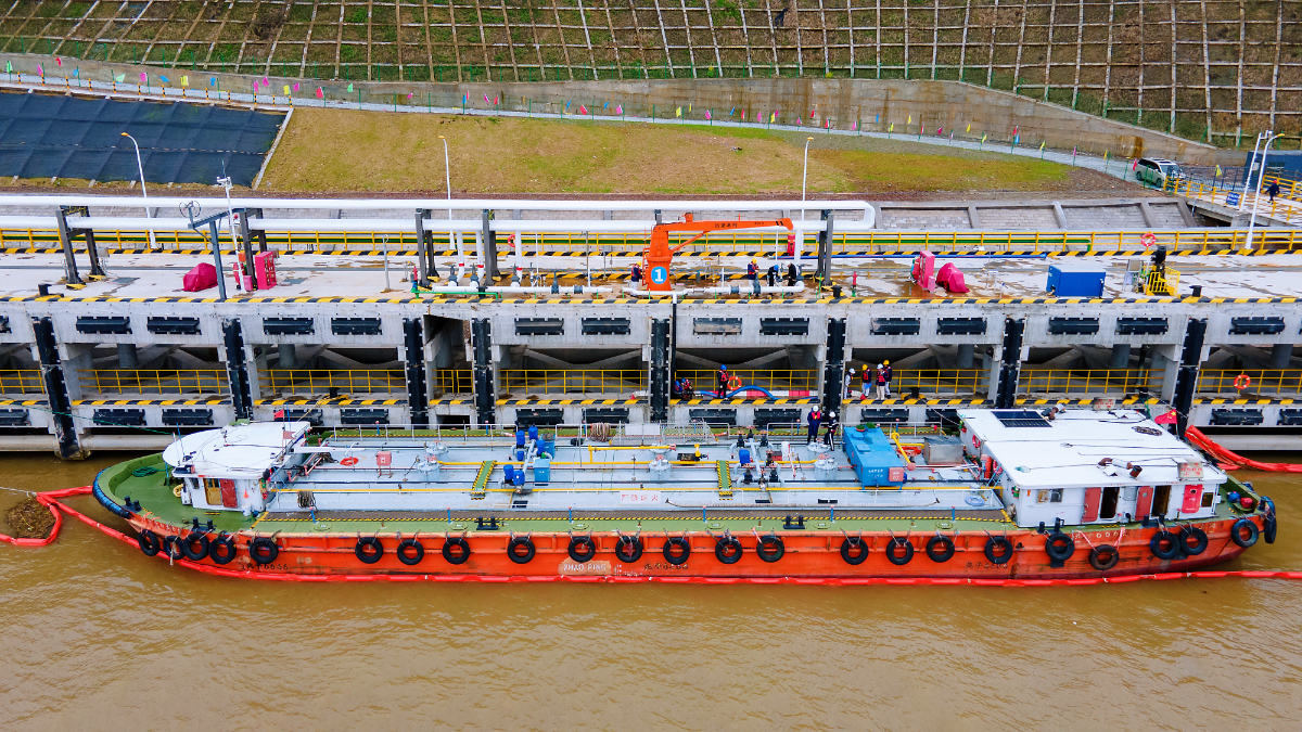 “一切檢查完畢,具備接卸條件!” “開始卸油!”3月6日上午10時48分,坐落于蘭溪市蘭江畔的浙石油蘭溪油庫內,隨著進油現場總指揮一聲令下,油庫碼頭正式啟泵,“兆平6666”油船466噸柴油沿著配套管道緩緩注入油庫D01儲罐。這是該油庫具備運營資質以來首次進油,有力開創油庫運營新局面,奮力奪取一季度“開門紅”。